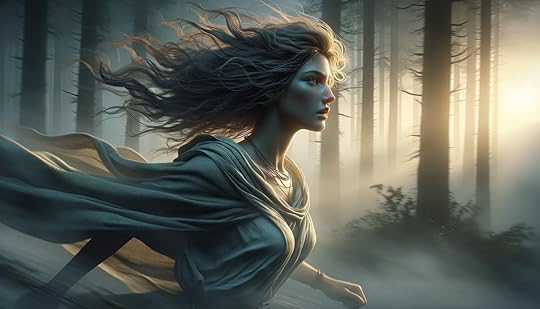 Cyrus eventually spots her peeking from among the leaves. Her face is “milk-pale, long and narrow, it had an exotic angularity and simplicity such as might be depicted in a comic book artist’s version of beauty, too streamlined to be real, and it was more compelling than the face of any human woman I had known. Her eyes were dark, almost no whites showing around enormous pupils, and the eyebrows were black, upswept streaks. Sharp cheekbones mimicked the angle of her eyebrows; her mouth was wide and full, predatory yet sensual.” Then the shocker: “She emerged further from the leaves, snarled black hair waterfalling to her waist, and stared at me as if I were the one thing in the world that mattered.”